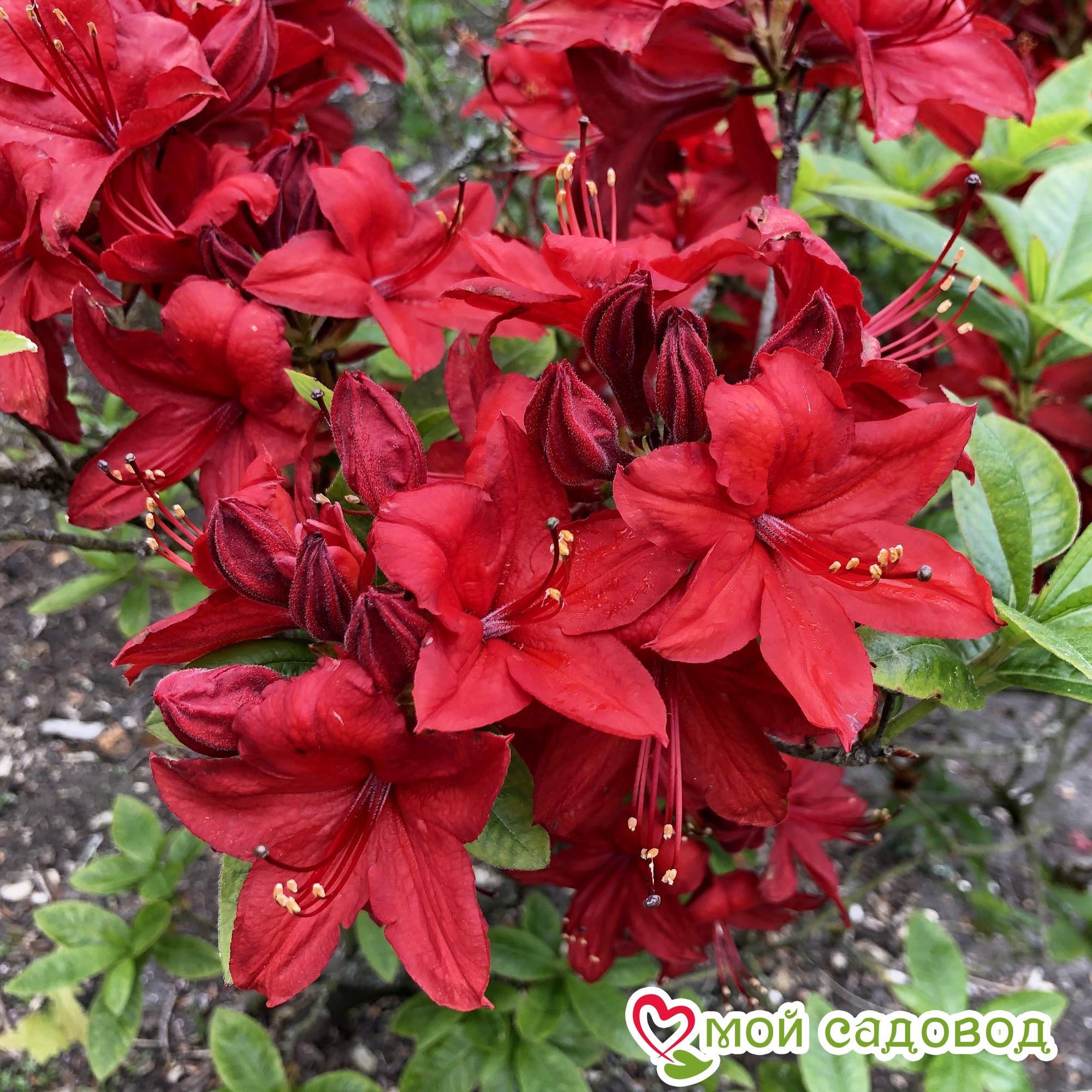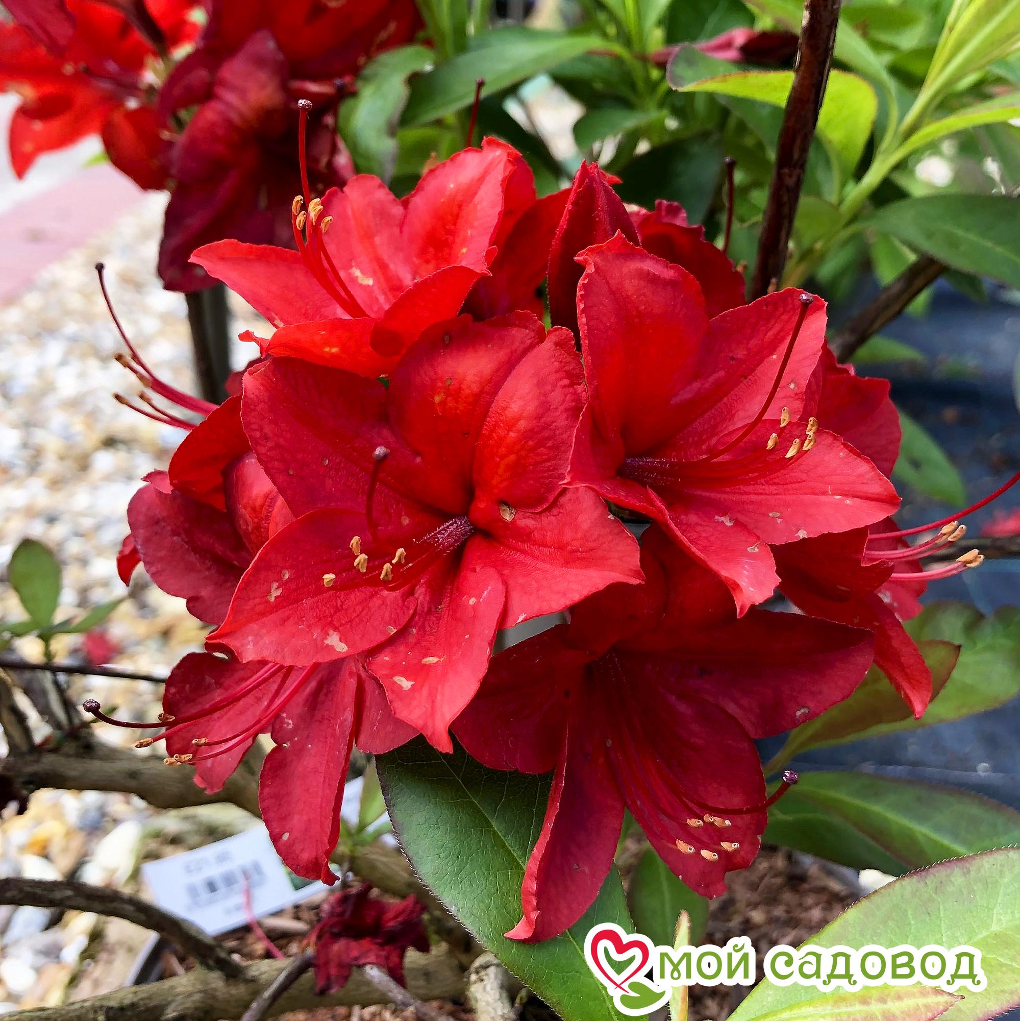 Сорт с огненно-красными цветками. Непревзойдённый среди красных сортов. Растение формирует округлый плотный куст, высота примерно равна ширине, обычно рододендрон не превышает от 0,6 до 0,8 см по двум параметрам. Сорт используется для декорирования одиночных и групповых садовых композиций. При посадке в открытый грунт выбирайте для рододендрона безветренные участки, находящиеся в полутени. Гибрид адаптирован под условия холодных зим и хорошо переносит понижение температур до -30C. Однако из-за особенности корневой системы растение в холодный период нуждается в воздушно-каркасном укрытии. Чтобы цветение было максимально декоративным, вносите комплексные удобрения 2-3 раза за сезон.
